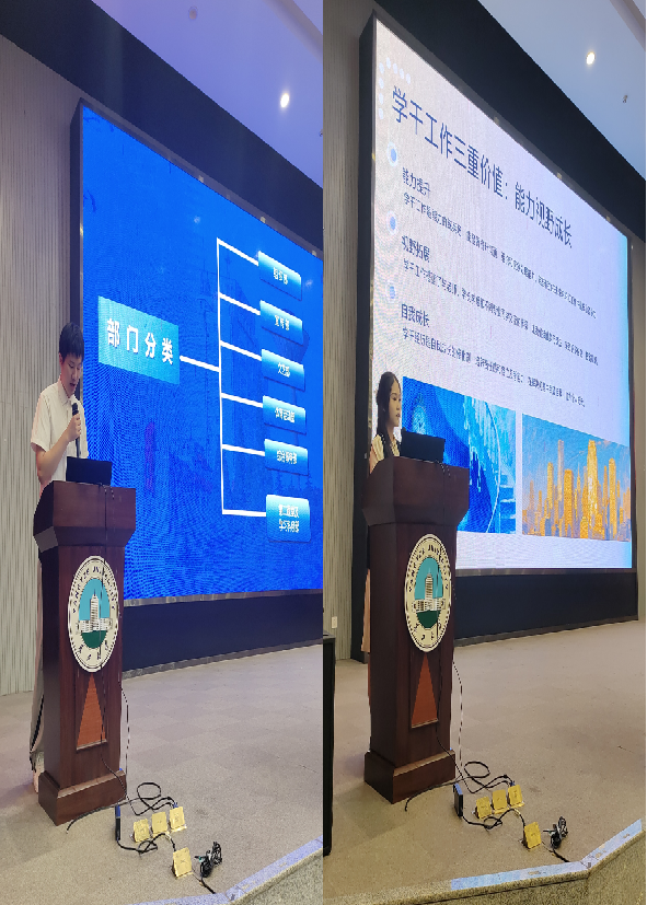 2023级学生干部汪智、苑舒彤则聚焦“伟德国际与学业平衡”这一核心困惑,通过班级管理难题破解、校园活动组织实操等真实案例,传递“在责任中成长,以服务促提升”的理念,既解答了新生的疑虑,更激发了大家参与校园建设的热情。