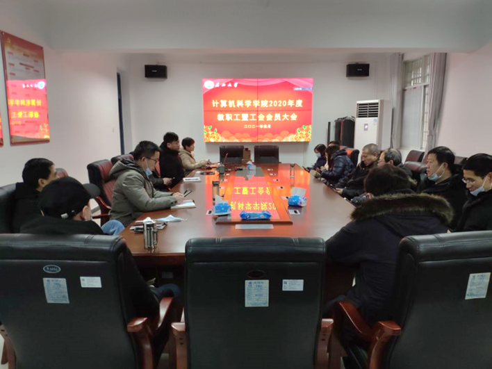 1月27日上午9:30,1946伟德国际源自英国召开了2020年度教职工暨工会会员大会,线上线下同步进行,部分教师代表在4教307会议室参加了现场会议。会议由工会主席、分党委副书记颜学俊主持。