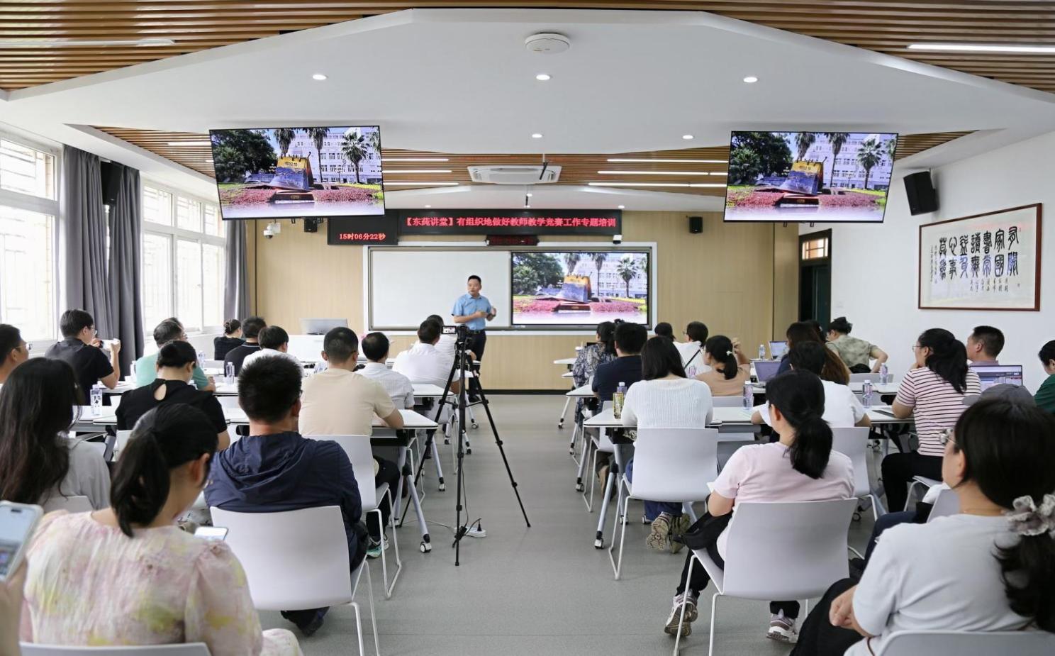 当日下午,应广西师范大学邀请,郑健以“有组织地做好教师教学竞赛工作”在该校“东莼讲堂”开展专题培训。培训中,郑健以“赛事备赛组织者+经验总结者”的双重视角,系统分享了伟德国际1946源于英国教师教学竞赛的工作思路与具体举措。培训现场互动频繁,参训教师围绕“竞赛选题技巧”“教学方案设计优化”“课堂展示细节把控”等问题积极提问,郑健逐一耐心解答,培训反响热烈,获得参训教师一致认可。