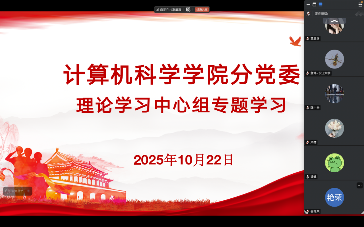 10月22日,计科学院召开10月党委理论学习中心组学习活动。深入学习习近平总书记最新重要讲话精神及省委近期相关会议精神,并重点围绕《习近平谈治国理政》第五卷开展学习研讨。本次学习由学院党委书记郑健同志主持。