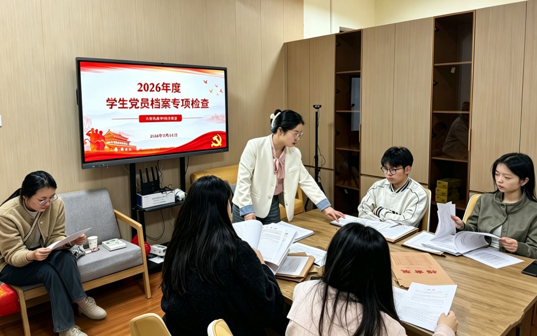 根据学校相关文件精神及学院党委工作部署,为进一步规范党员档案管理,强化党员发展程序合规性,学院党委于2026年3月16日至4月10日组织各学生党支部开展学生党员档案专项检查工作。学院学生党建专项负责人高滢老师于3月16日主持召开专项工作会议,部署核查任务,明确标准要求,保障工作有序推进。目前,全部检查及整改任务已圆满完成